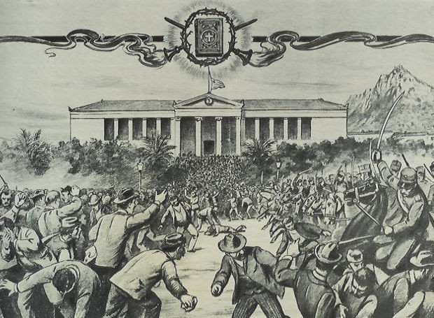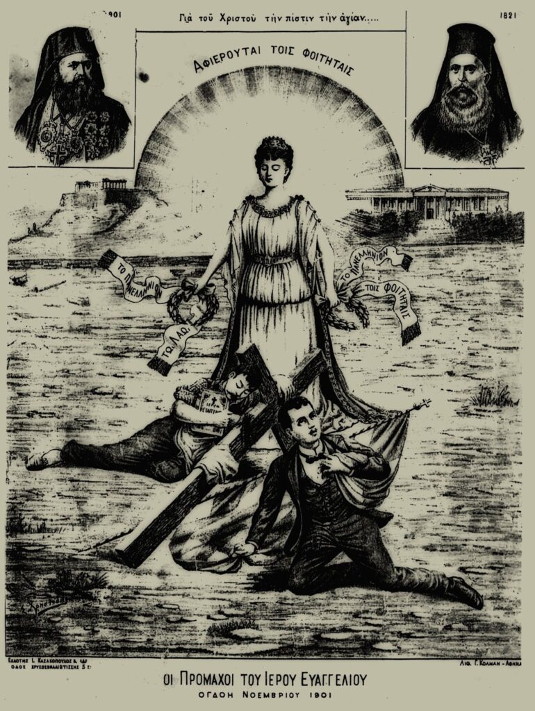 Το ευφυολόγημα είναι ενδεικτικό. Ο συντάκτης γνωρίζει, ότι οι βίαιες ταραχές των προηγούμενων ημερών που η εφημερίδα του κάλυψε -συμβάλλοντας, όπως και το σύνολο σχεδόν του Τύπου, στην περαιτέρω όξυνση των παθών – είχαν εκτός από το θρησκευτικό έντονο και το πολιτικό πρόσημο.1 Η φοιτητική εξέγερση, η οποία ξέσπασε την 5η Νοεμβρίου 1901 πυροδοτήθηκε από τη σφοδρή αντιπαράθεση που προκάλεσε η δημοσίευση στην εφημερίδα Ἀκρόπολις από την 9η Σεπτεμβρίου έως την 20η Οκτωβρίου μετάφρασης στη δημοτική του Κατὰ Ματθαῖον Ευαγγελίου. Τη μετάφραση είχε εκπονήσει ο Αλέξανδρος Πάλλης, ένθερμος υποστηρικτής της χρήσης της δημοτικής γλώσσας.2 Η εξέγερση απόκτησε ταχύτατα μέγεθος και διαστάσεις οι οποίες προφανώς αιφνιδίασαν την πολιτική ηγεσία, καθώς στις διαμαρτυρίες συμμετείχαν, εκτός από τους φοιτητές, Πανεπιστημιακοί δάσκαλοι, απλοί πολίτες και οι Συντεχνίες Αθηνών-Πειραιώς. Αδέξιοι χειρισμοί στην προσπάθεια ελέγχου των γεγονότων σε συνδυασμό, όπως συνήθως συμβαίνει σε παρόμοιες συνθήκες, με το «απρόβλεπτο» οδήγησαν στη «Ματωμένη Πέμπτη» της 8ης Νοεμβρίου με τους οκτώ νεκρούς και περί τους εβδομήντα τραυματίες και στη συνακόλουθη παραίτηση της κυβέρνησης του Γεωργίου Θεοτόκη (ο οποίος μάλιστα κινδύνευσε και ο ίδιος από την οργή των διαδηλωτών) και του Μητροπολίτη Αθηνών Προκοπίου. Παύθηκαν επίσης από τα καθήκοντά τους ο Διευθυντής της Αστυνομίας Δ. Βούλτσος και ο Αρχηγός της Χωροφυλακής Δ. Στάϊκος.3